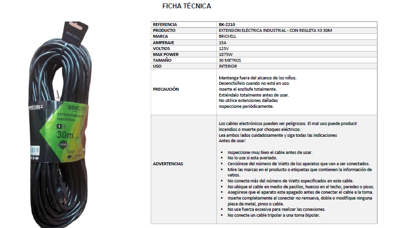 CABLE ENCAUCHETADO 3 X 14 EXTENSION TRABAJO PESADO X 3 30M (BK-2210) (CERTIFICADO)