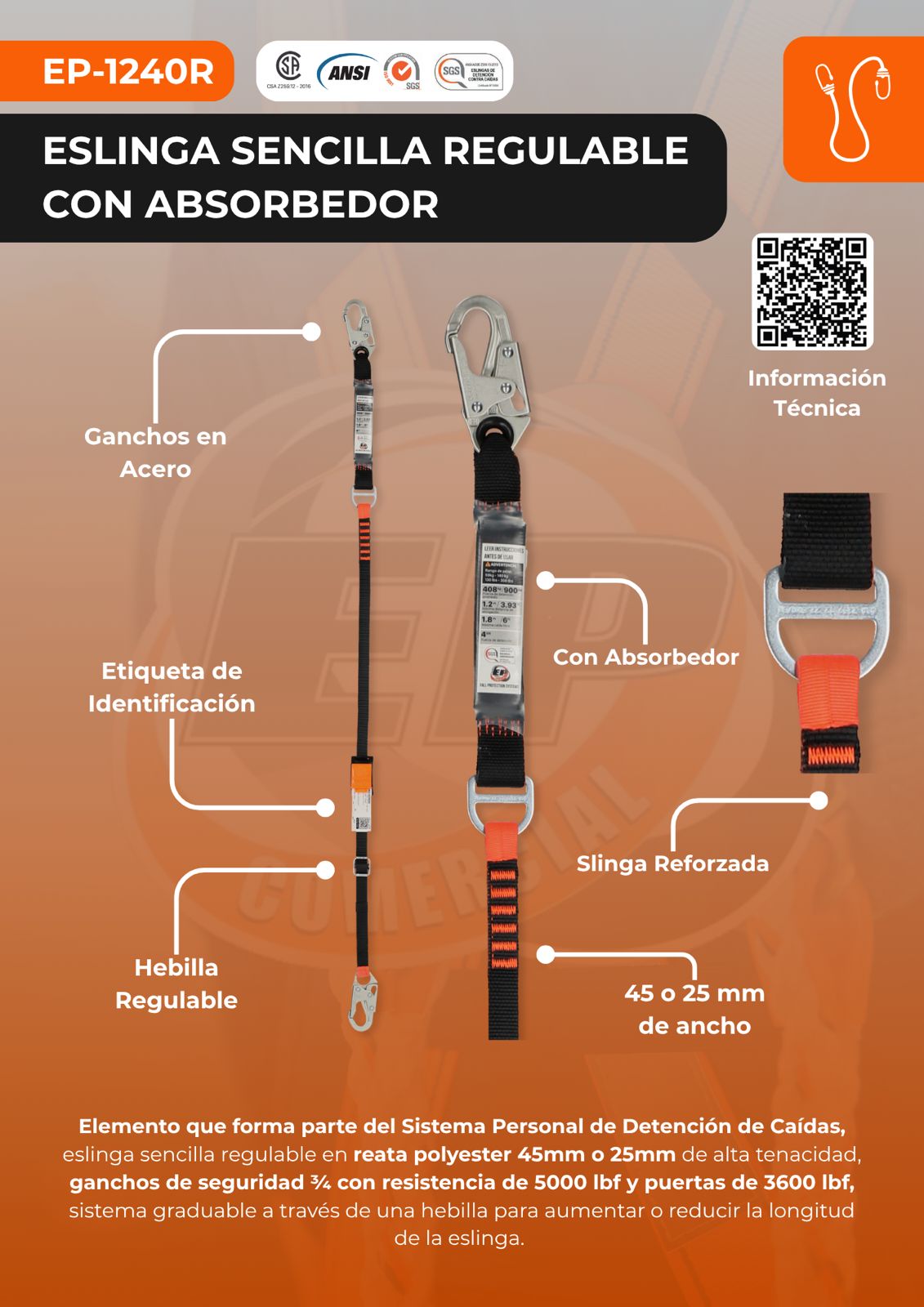 ESLINGA DE POSICIONAMIENTO REGULABLE CON ABSORBEDOR EP (EP-1240R)