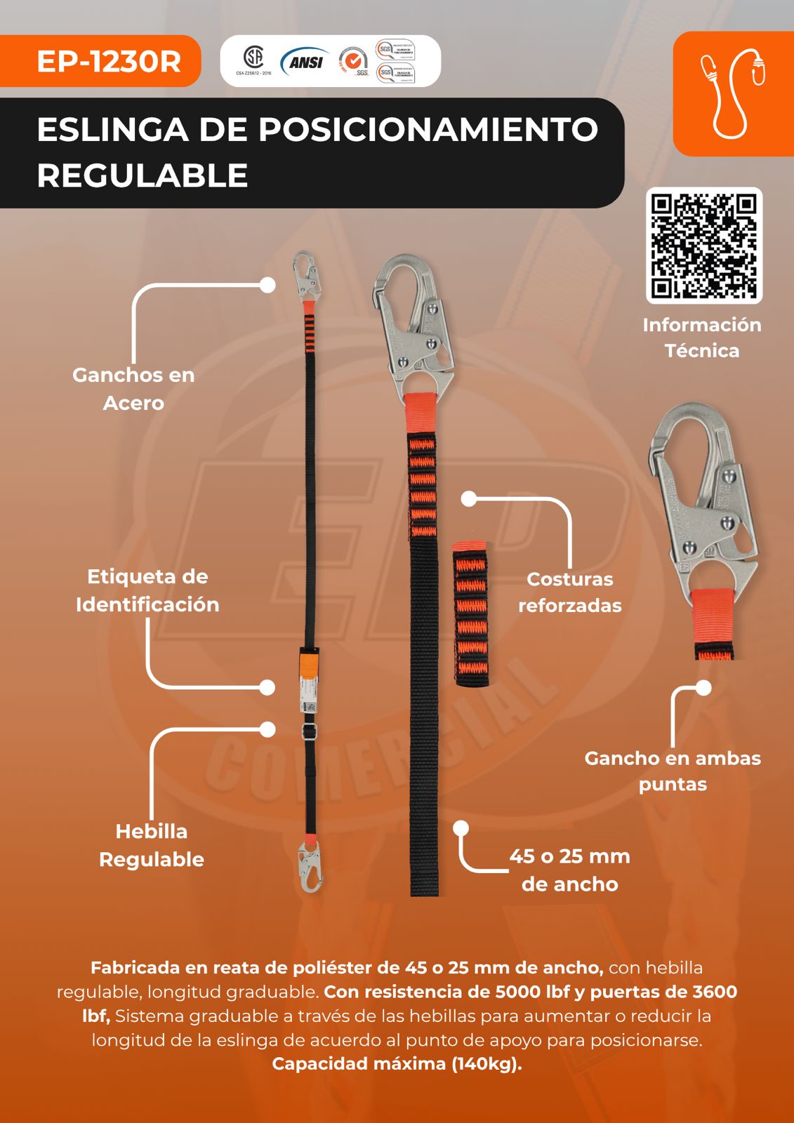 ESLINGA DE POSICIONAMIENTO REGULABLE EP (EP-1230R)